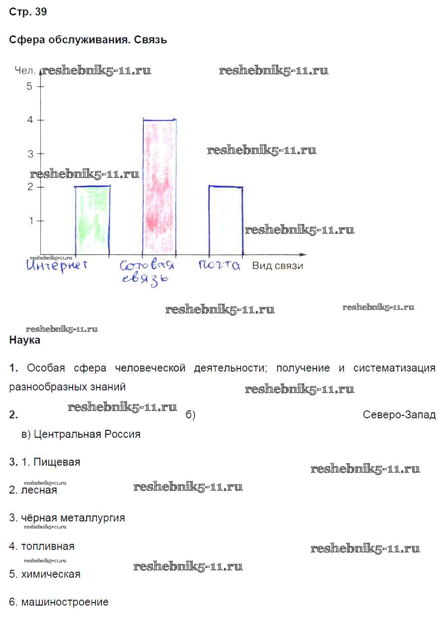 Готовая домашняя работа с ответами по Географии за 9 класс Баринова, Дронов Рабочая тетрадь Вертикаль Дрофа 2016 ФГОС - Страницы 39