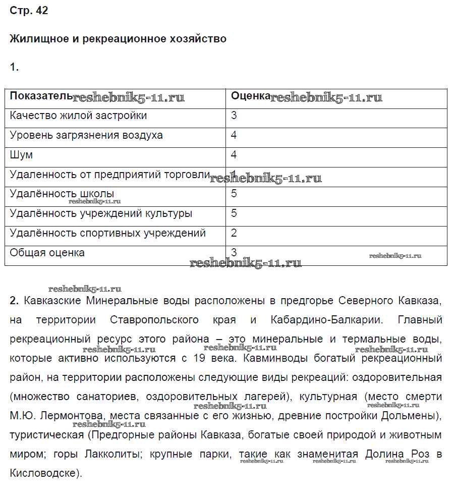 Готовая домашняя работа с ответами по Географии за 9 класс Баринова, Дронов Рабочая тетрадь Вертикаль Дрофа 2016 ФГОС - Страницы 42