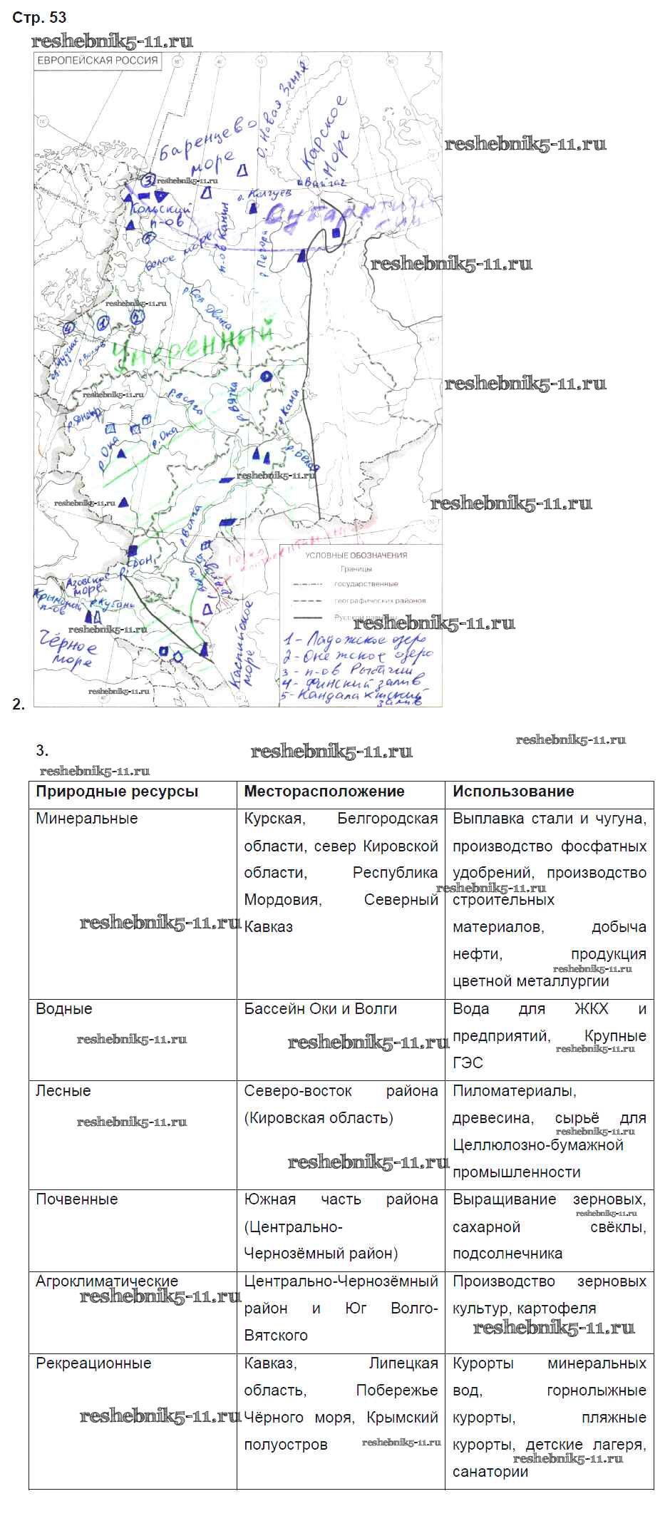 Готовая домашняя работа с ответами по Географии за 9 класс Баринова, Дронов Рабочая тетрадь Вертикаль Дрофа 2016 ФГОС - Страницы 53