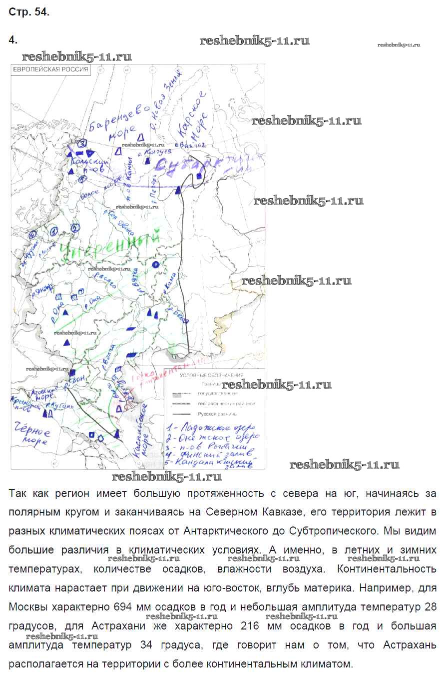География за 9 класс Баринова Рабочая тетрадь Вертикаль Дрофа страница № 54