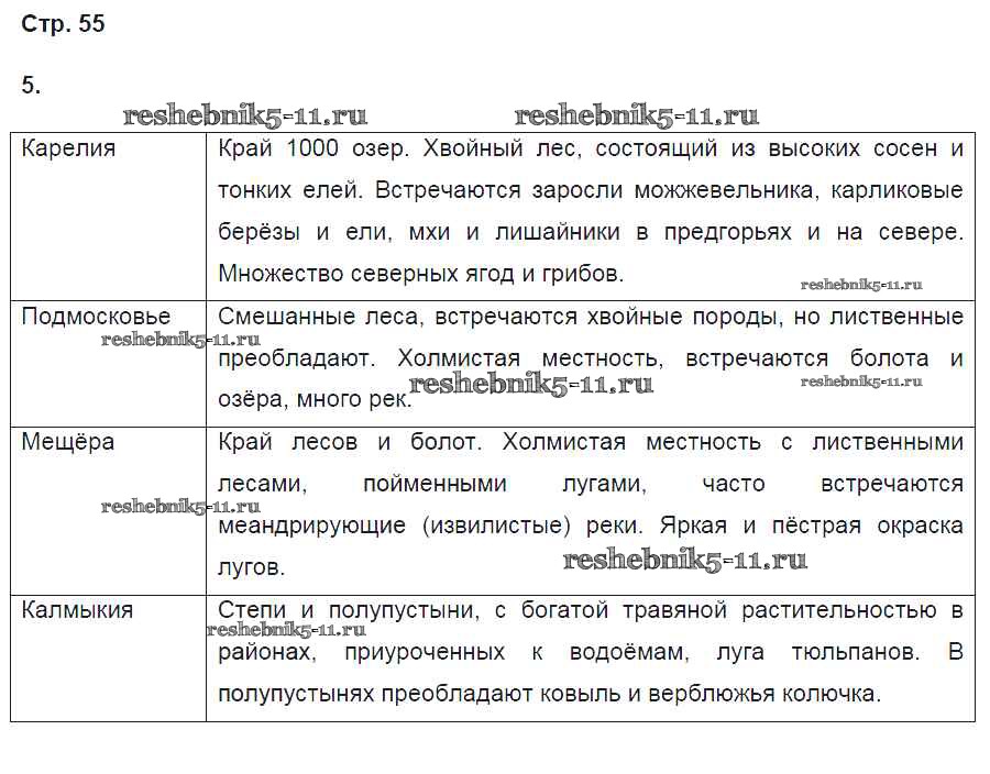 Готовая домашняя работа с ответами по Географии за 9 класс Баринова, Дронов Рабочая тетрадь Вертикаль Дрофа 2016 ФГОС - Страницы 55