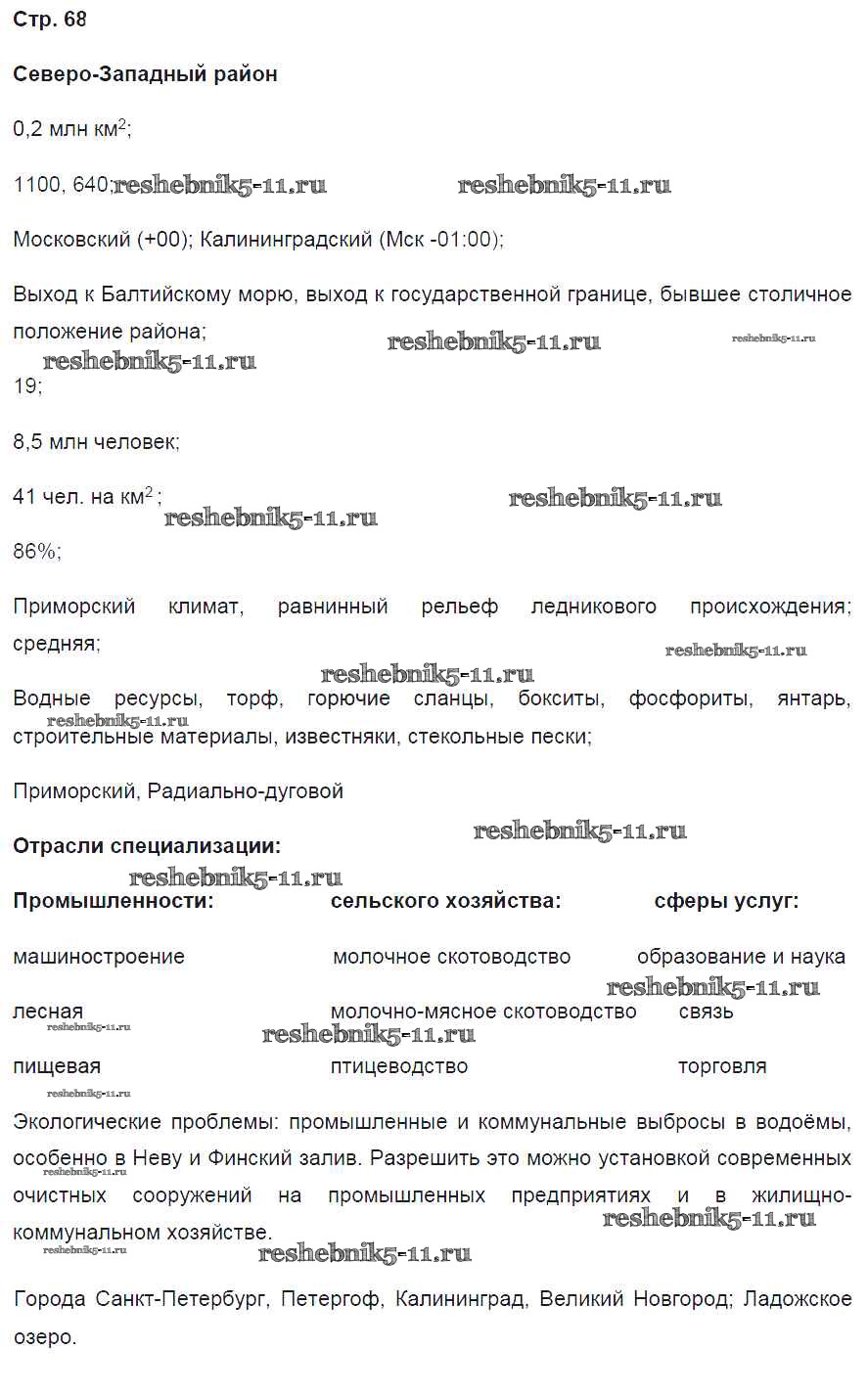 Готовая домашняя работа с ответами по Географии за 9 класс Баринова, Дронов Рабочая тетрадь Вертикаль Дрофа 2016 ФГОС - Страницы 68