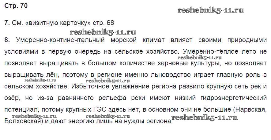 Готовая домашняя работа с ответами по Географии за 9 класс Баринова, Дронов Рабочая тетрадь Вертикаль Дрофа 2016 ФГОС - Страницы 70