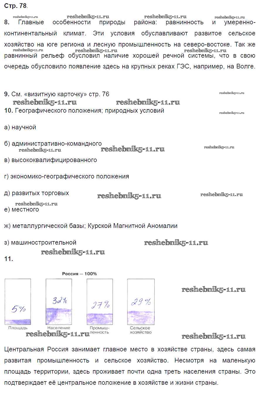 Готовая домашняя работа с ответами по Географии за 9 класс Баринова, Дронов Рабочая тетрадь Вертикаль Дрофа 2016 ФГОС - Страницы 78