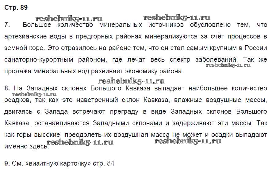 Готовая домашняя работа с ответами по Географии за 9 класс Баринова, Дронов Рабочая тетрадь Вертикаль Дрофа 2016 ФГОС - Страницы 89