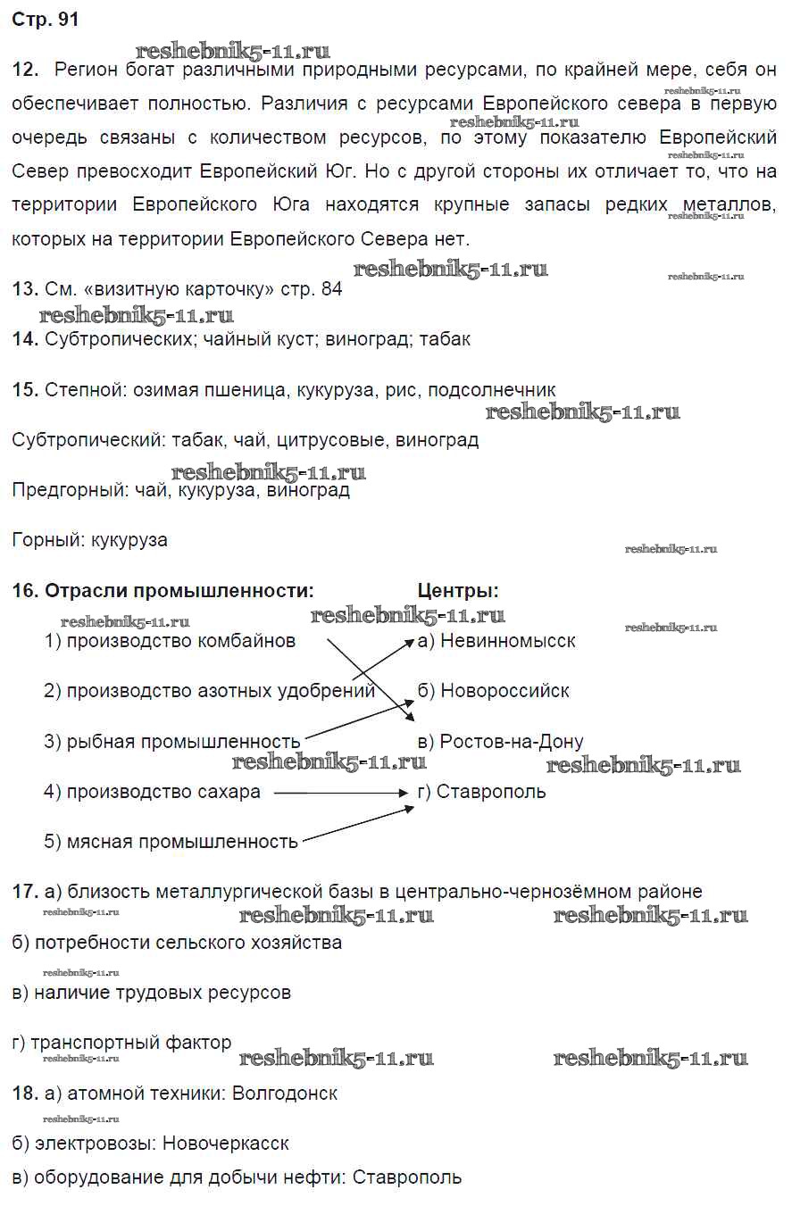 Готовая домашняя работа с ответами по Географии за 9 класс Баринова, Дронов Рабочая тетрадь Вертикаль Дрофа 2016 ФГОС - Страницы 91