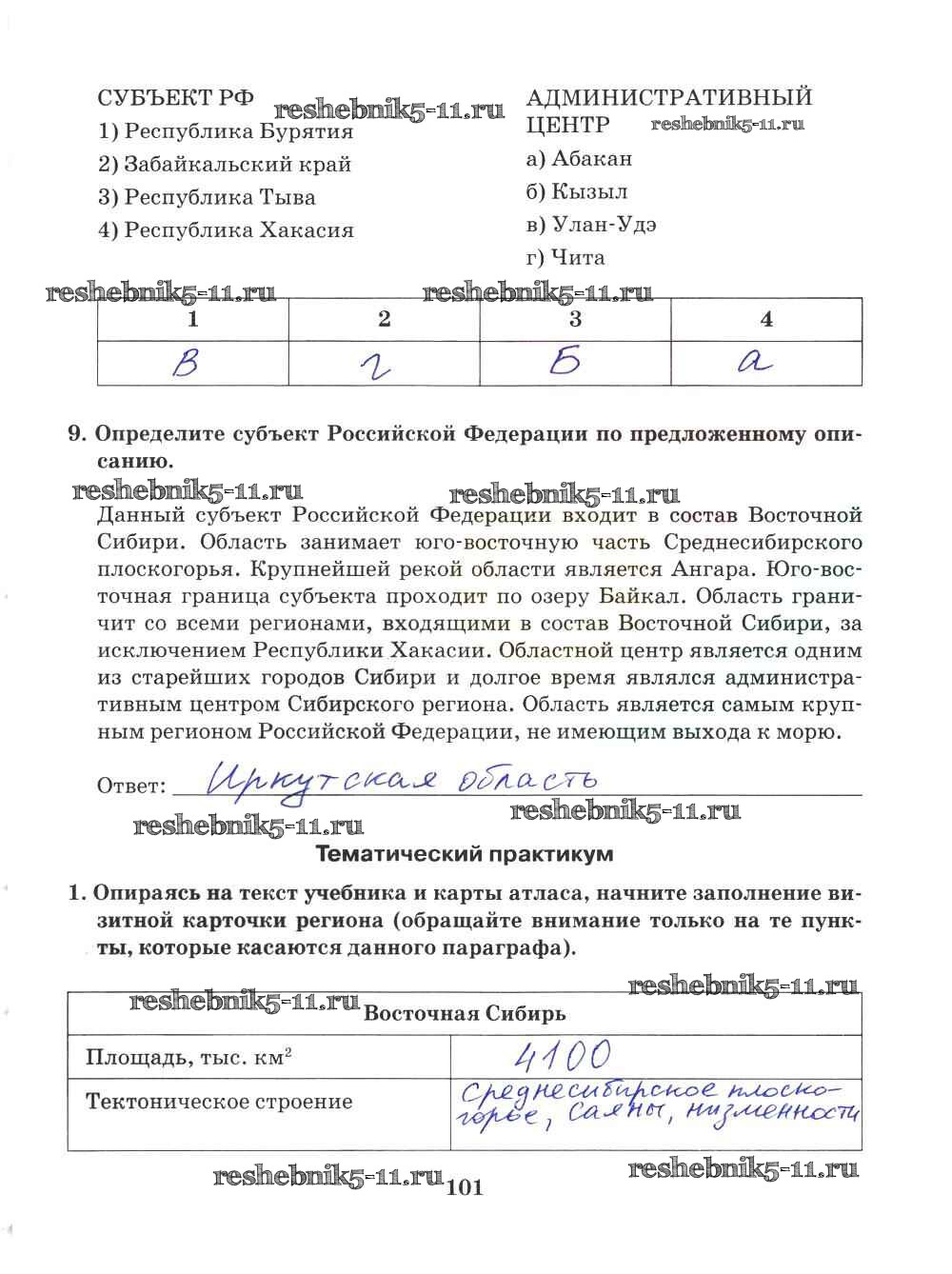 Готовая домашняя работа с ответами по Географии за 9 класс Домогацких Рабочая тетрадь Инновационная школа Русское слово 2018 ФГОС - Часть 1. Страницы 101