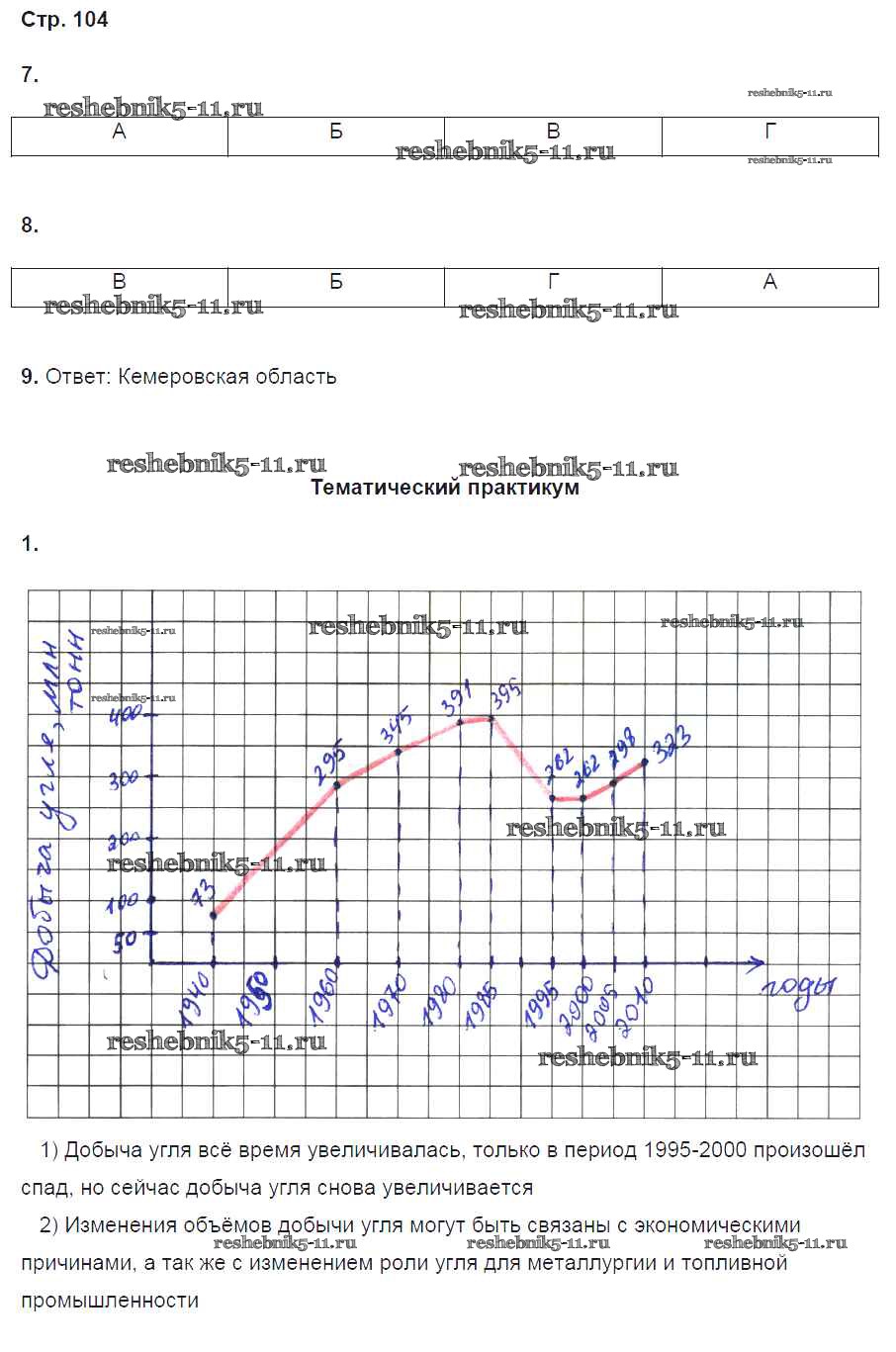Готовая домашняя работа с ответами по Географии за 9 класс Домогацких Рабочая тетрадь Инновационная школа Русское слово 2018 ФГОС - Часть 1. Страницы 104