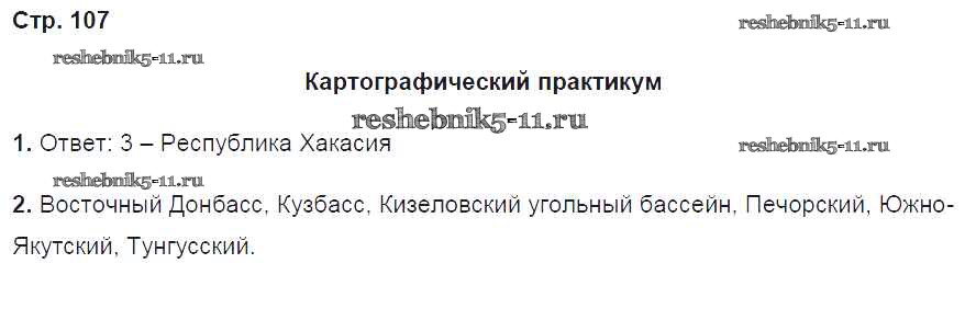 Готовая домашняя работа с ответами по Географии за 9 класс Домогацких Рабочая тетрадь Инновационная школа Русское слово 2018 ФГОС - Часть 1. Страницы 107