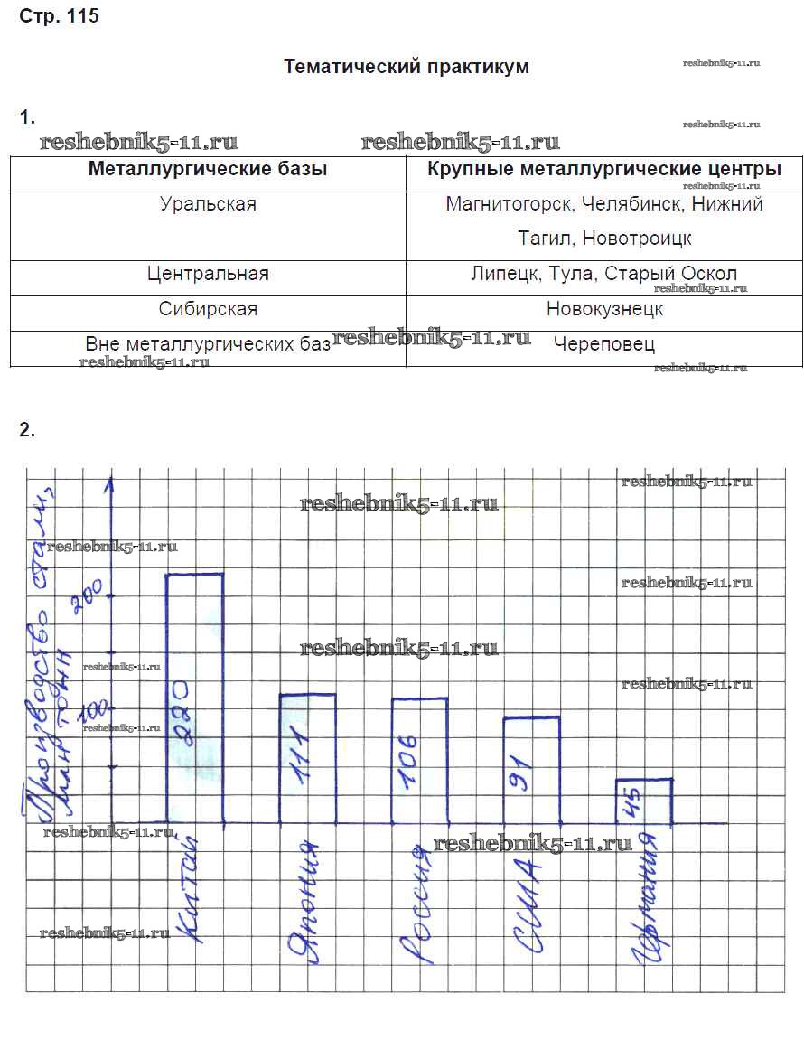 Готовая домашняя работа с ответами по Географии за 9 класс Домогацких Рабочая тетрадь Инновационная школа Русское слово 2018 ФГОС - Часть 1. Страницы 115