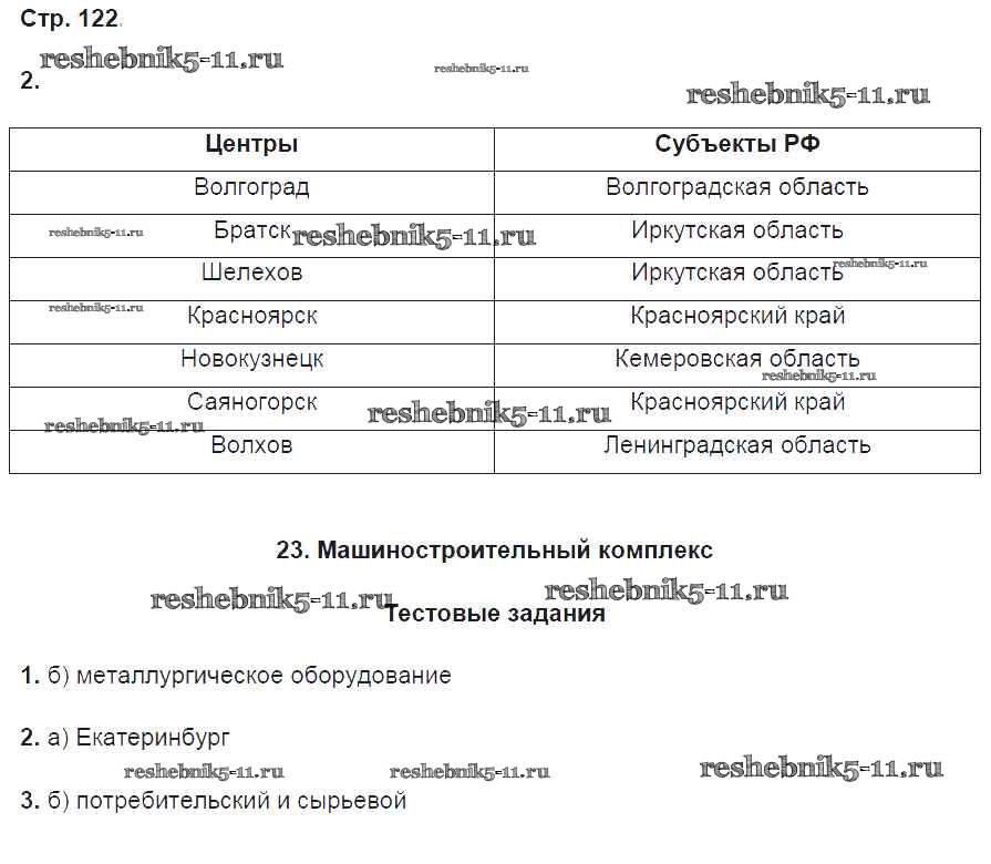 Готовая домашняя работа с ответами по Географии за 9 класс Домогацких Рабочая тетрадь Инновационная школа Русское слово 2018 ФГОС - Часть 1. Страницы 122