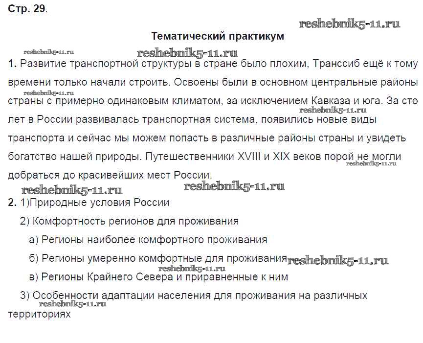 Готовая домашняя работа с ответами по Географии за 9 класс Домогацких Рабочая тетрадь Инновационная школа Русское слово 2018 ФГОС - Часть 1. Страницы 29