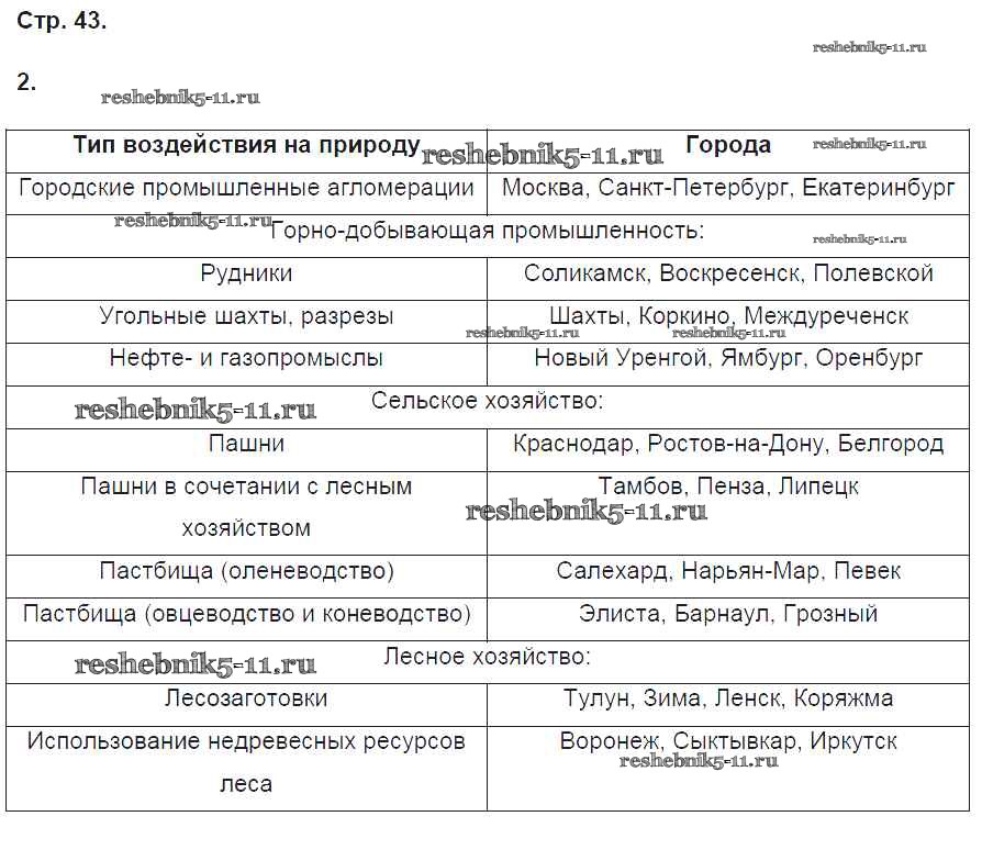 Готовая домашняя работа с ответами по Географии за 9 класс Домогацких Рабочая тетрадь Инновационная школа Русское слово 2018 ФГОС - Часть 1. Страницы 43