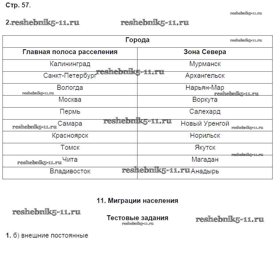 Готовая домашняя работа с ответами по Географии за 9 класс Домогацких Рабочая тетрадь Инновационная школа Русское слово 2018 ФГОС - Часть 1. Страницы 57
