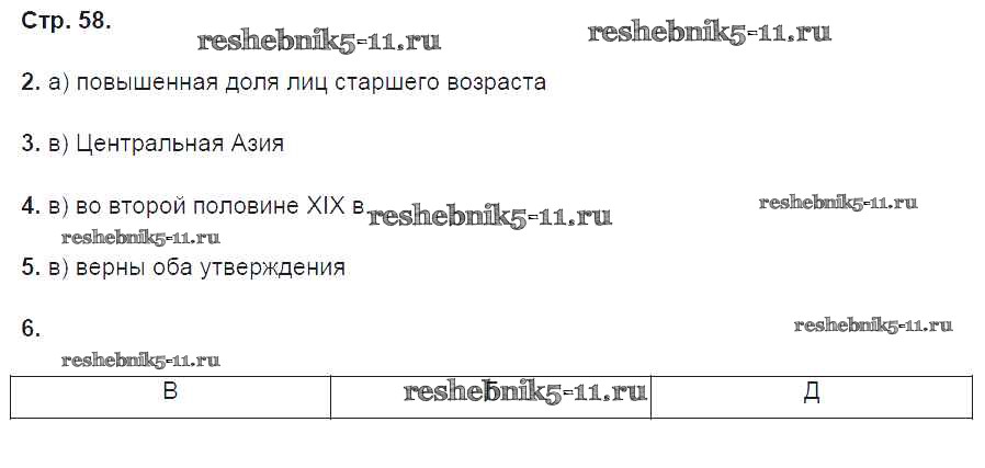 Готовая домашняя работа с ответами по Географии за 9 класс Домогацких Рабочая тетрадь Инновационная школа Русское слово 2018 ФГОС - Часть 1. Страницы 58