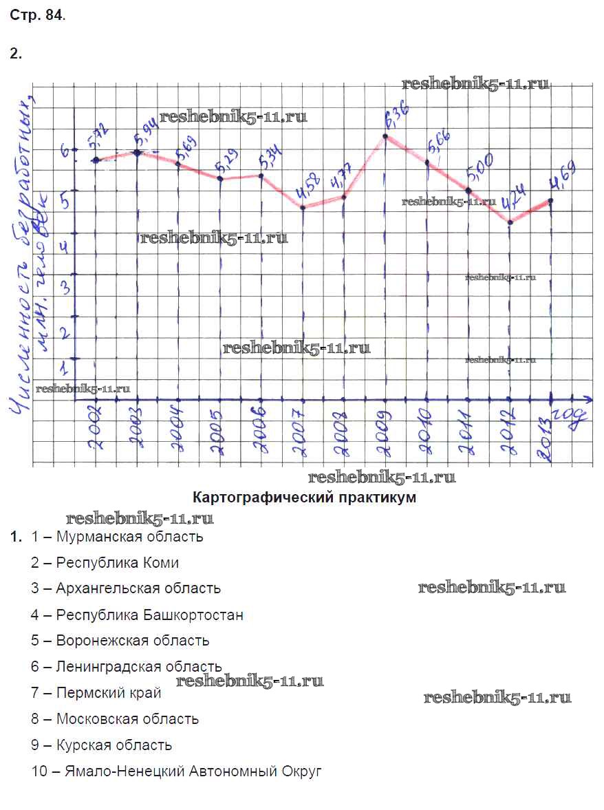 Готовая домашняя работа с ответами по Географии за 9 класс Домогацких Рабочая тетрадь Инновационная школа Русское слово 2018 ФГОС - Часть 1. Страницы 84