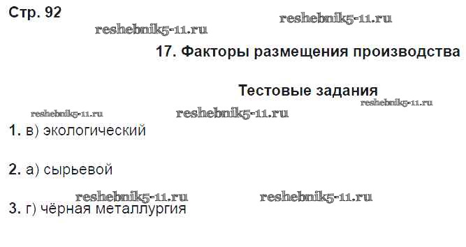 Готовая домашняя работа с ответами по Географии за 9 класс Домогацких Рабочая тетрадь Инновационная школа Русское слово 2018 ФГОС - Часть 1. Страницы 92