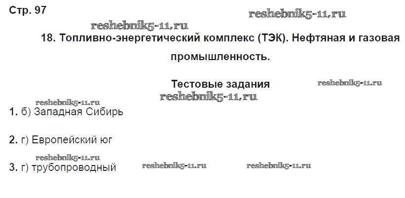 Готовая домашняя работа с ответами по Географии за 9 класс Домогацких Рабочая тетрадь Инновационная школа Русское слово 2018 ФГОС - Часть 1. Страницы 97