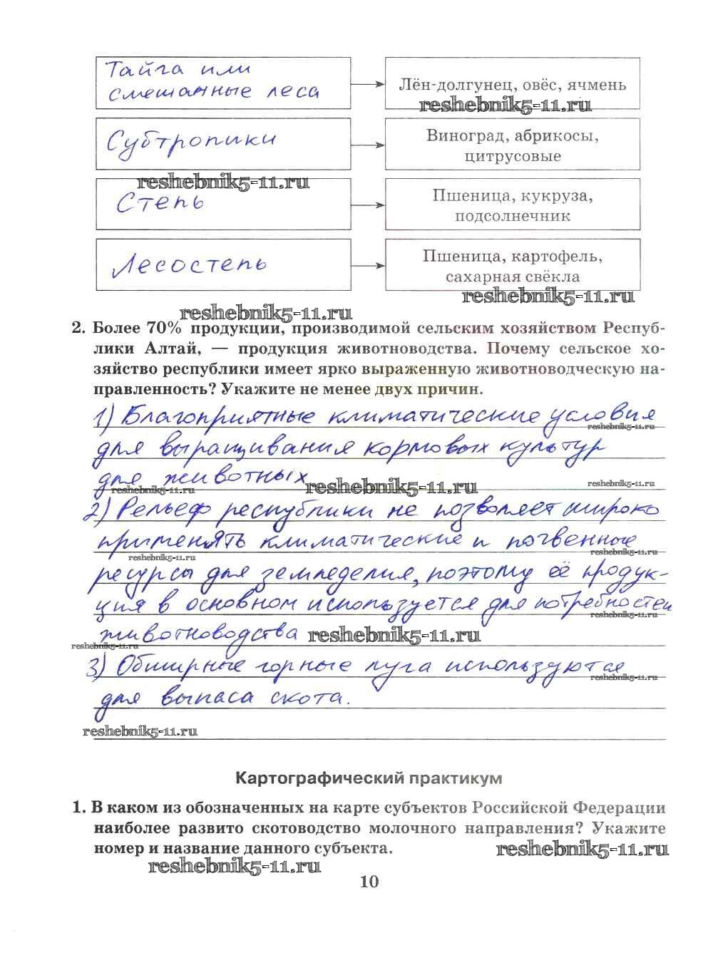 Готовая домашняя работа с ответами по Географии за 9 класс Домогацких Рабочая тетрадь Инновационная школа Русское слово 2018 ФГОС - Часть 2. Страницы 10