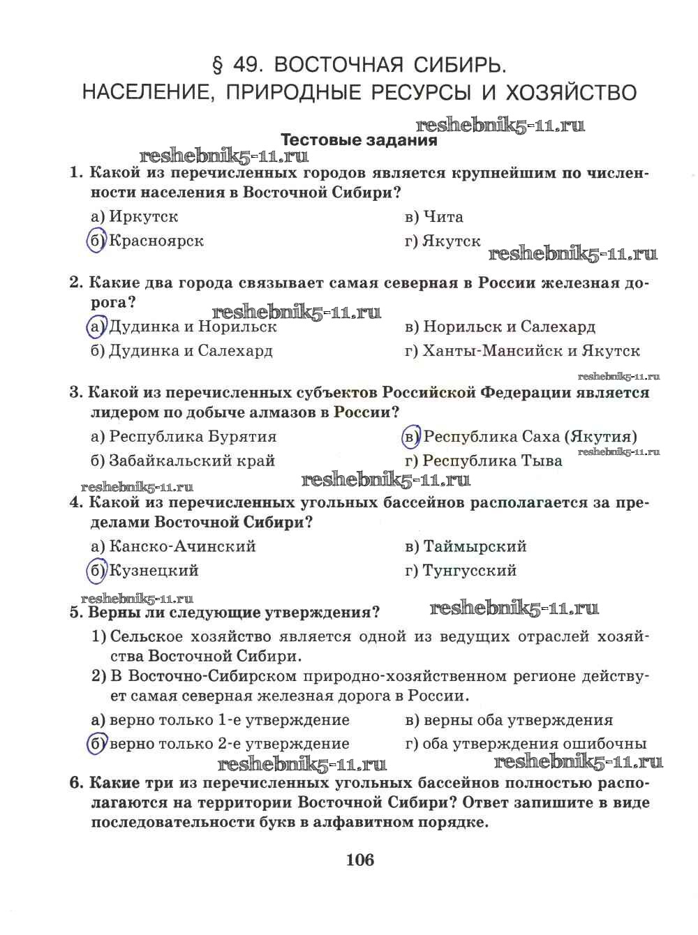 Готовая домашняя работа с ответами по Географии за 9 класс Домогацких Рабочая тетрадь Инновационная школа Русское слово 2018 ФГОС - Часть 2. Страницы 106
