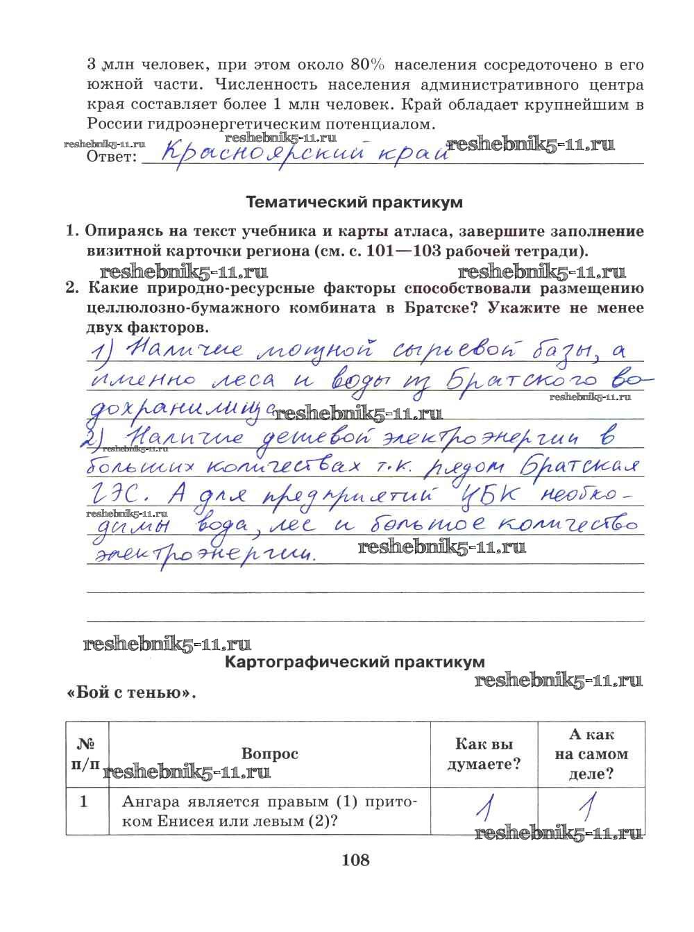 Готовая домашняя работа с ответами по Географии за 9 класс Домогацких Рабочая тетрадь Инновационная школа Русское слово 2018 ФГОС - Часть 2. Страницы 108
