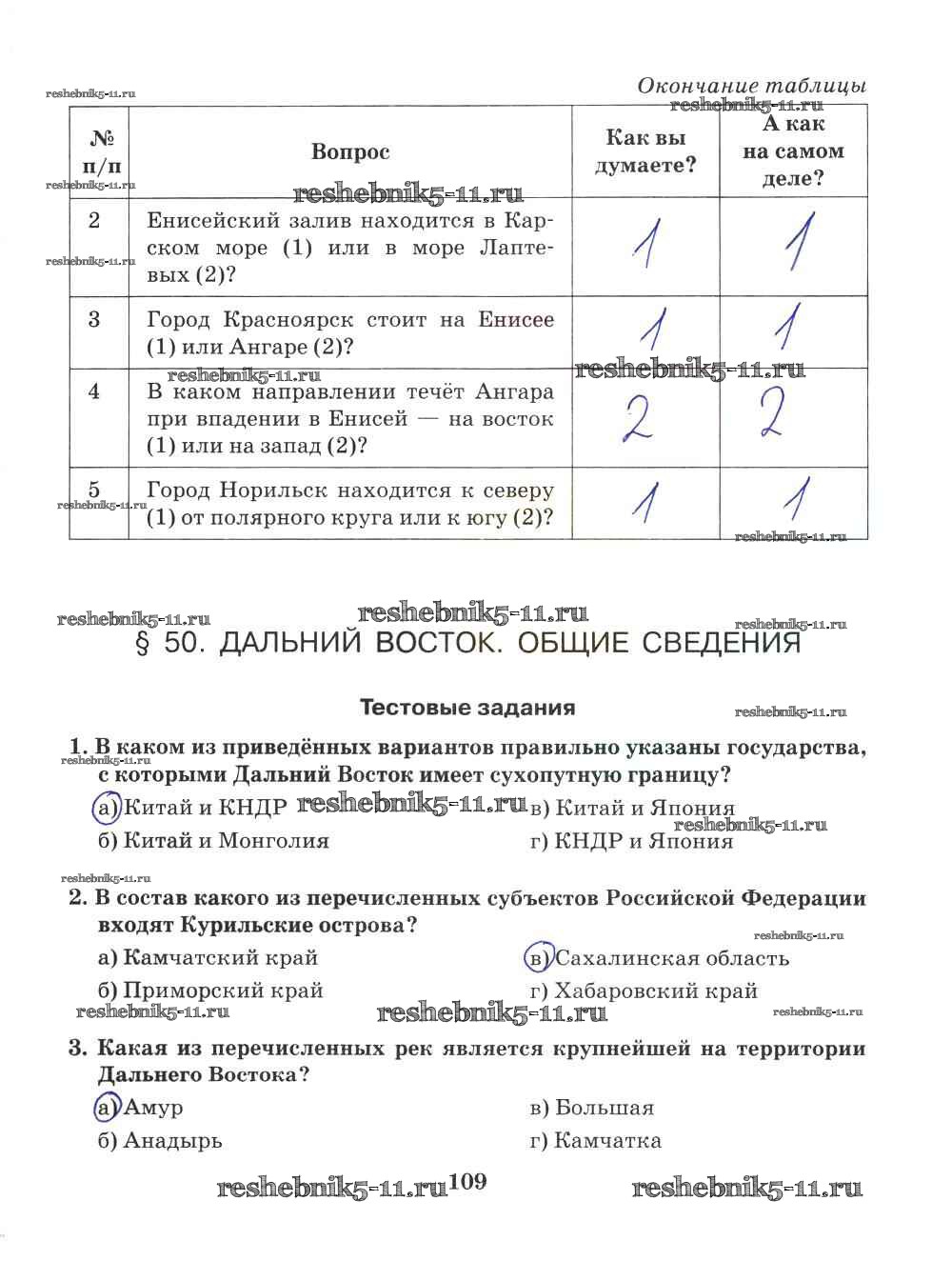 Готовая домашняя работа с ответами по Географии за 9 класс Домогацких Рабочая тетрадь Инновационная школа Русское слово 2018 ФГОС - Часть 2. Страницы 109