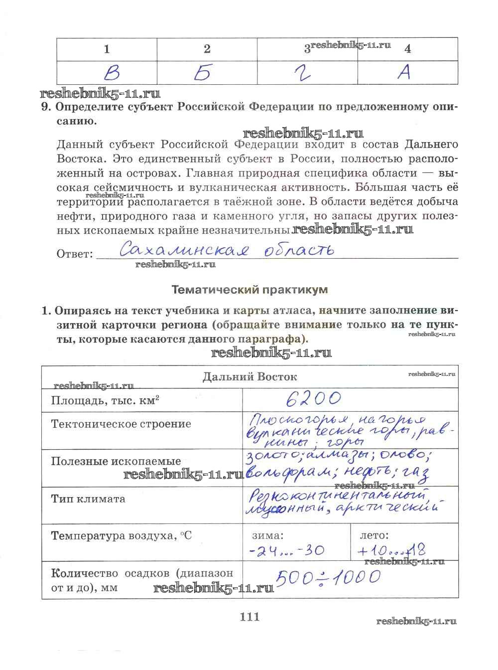 Готовая домашняя работа с ответами по Географии за 9 класс Домогацких Рабочая тетрадь Инновационная школа Русское слово 2018 ФГОС - Часть 2. Страницы 111