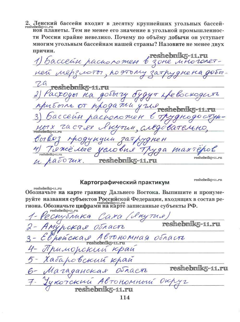 Готовая домашняя работа с ответами по Географии за 9 класс Домогацких Рабочая тетрадь Инновационная школа Русское слово 2018 ФГОС - Часть 2. Страницы 114
