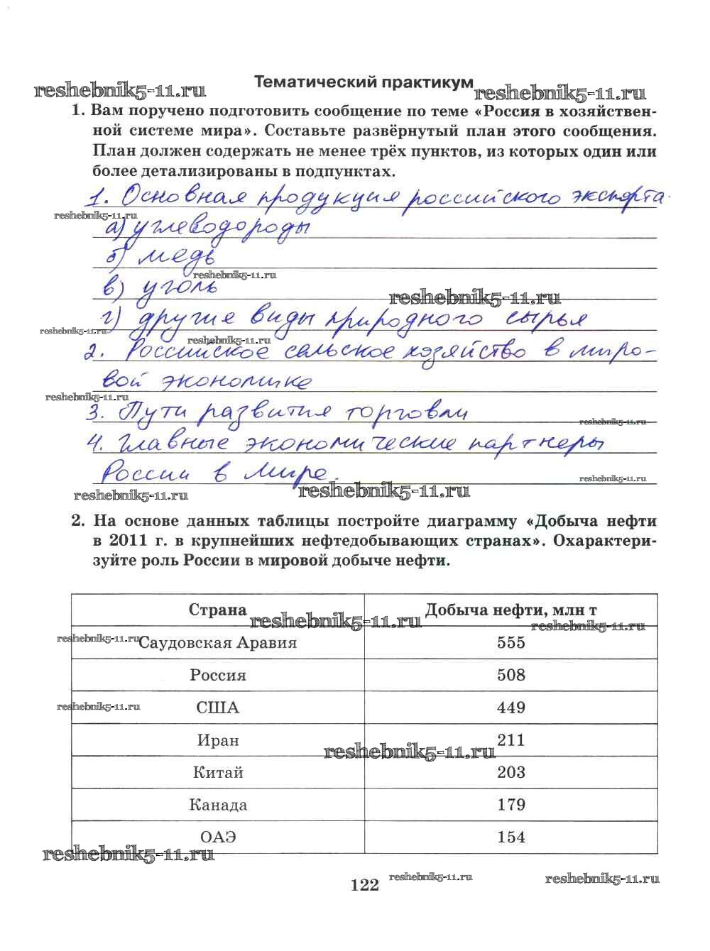 Готовая домашняя работа с ответами по Географии за 9 класс Домогацких Рабочая тетрадь Инновационная школа Русское слово 2018 ФГОС - Часть 2. Страницы 122