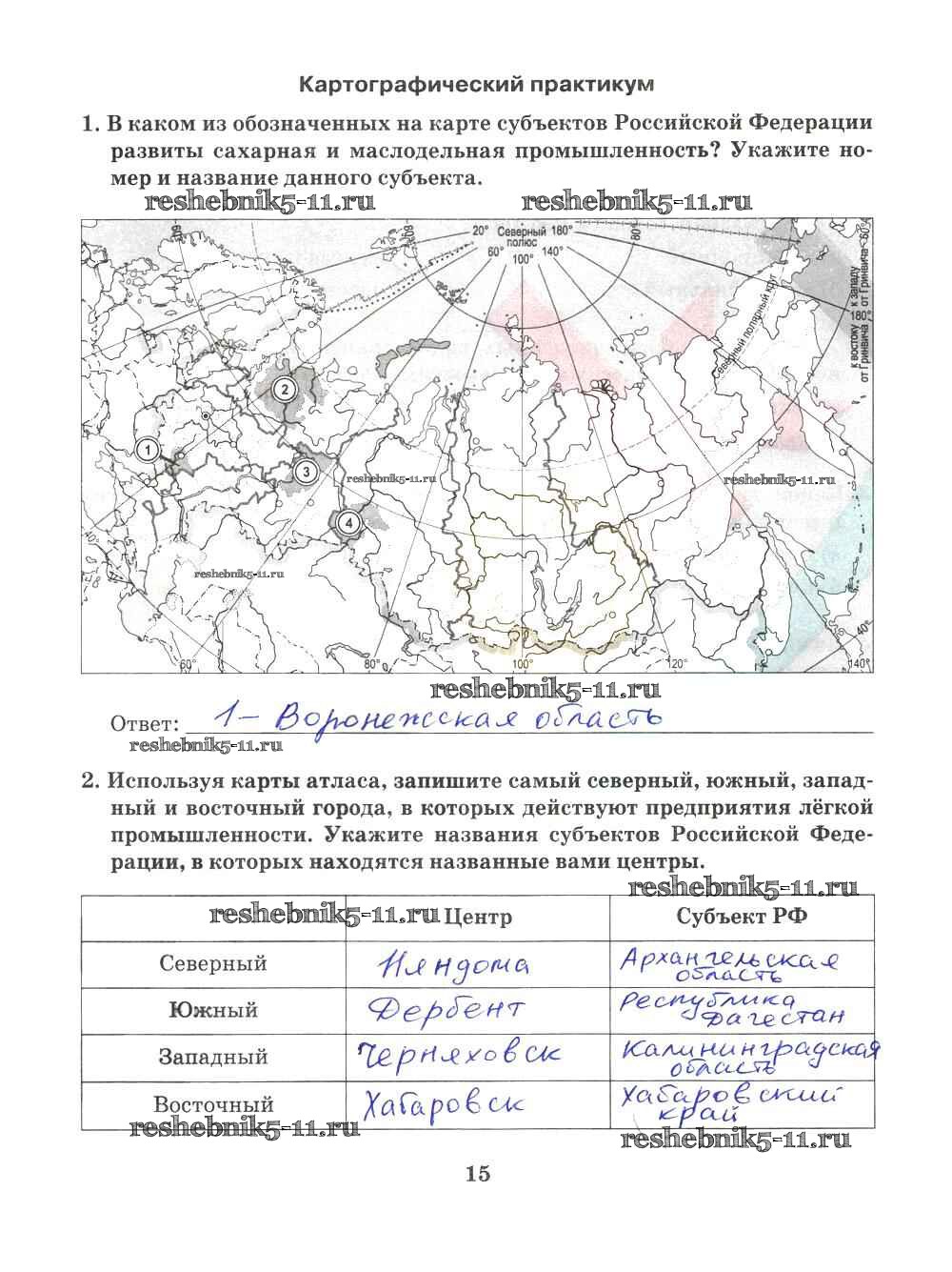 Готовая домашняя работа с ответами по Географии за 9 класс Домогацких Рабочая тетрадь Инновационная школа Русское слово 2018 ФГОС - Часть 2. Страницы 15