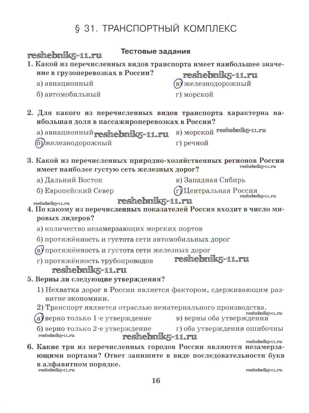 Готовая домашняя работа с ответами по Географии за 9 класс Домогацких Рабочая тетрадь Инновационная школа Русское слово 2018 ФГОС - Часть 2. Страницы 16