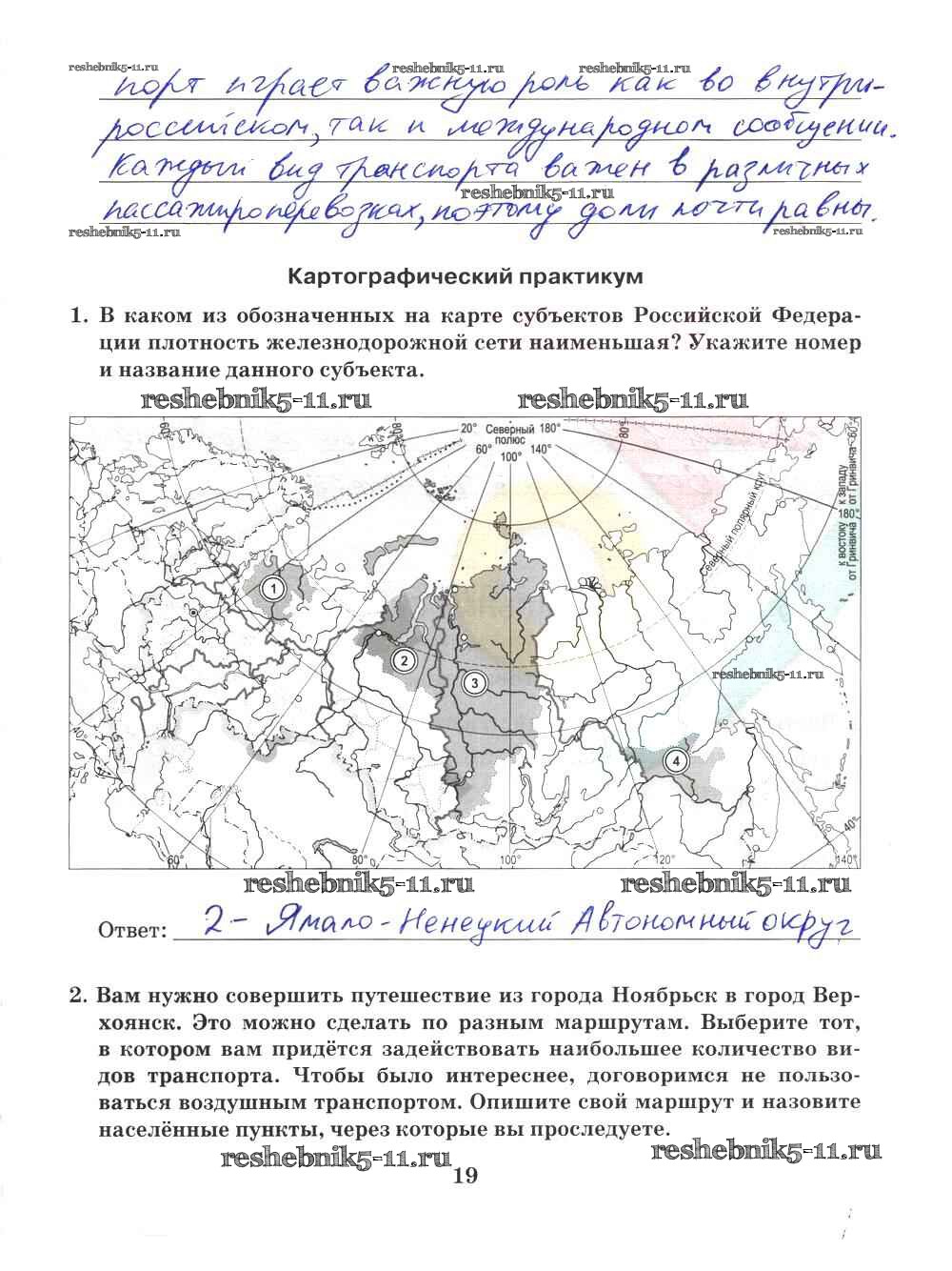 Готовая домашняя работа с ответами по Географии за 9 класс Домогацких Рабочая тетрадь Инновационная школа Русское слово 2018 ФГОС - Часть 2. Страницы 19