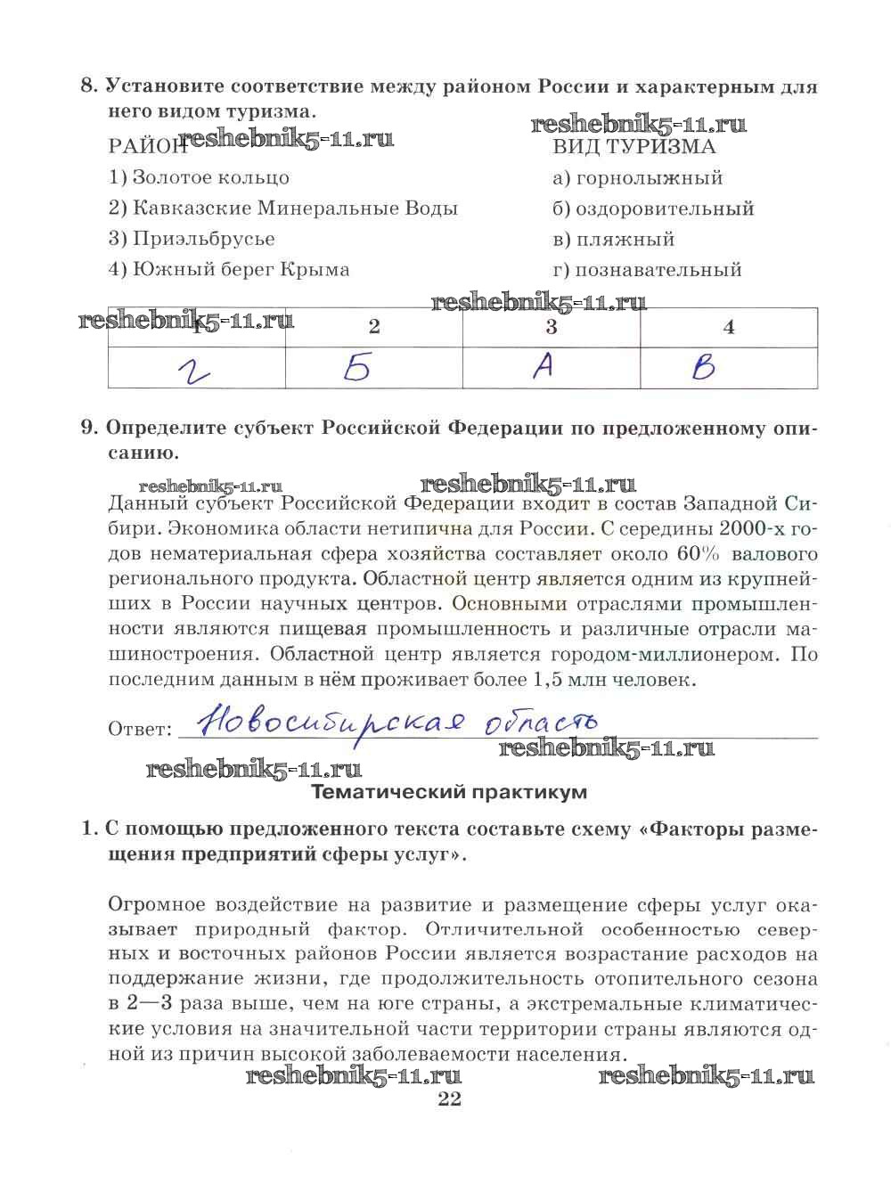 Готовая домашняя работа с ответами по Географии за 9 класс Домогацких Рабочая тетрадь Инновационная школа Русское слово 2018 ФГОС - Часть 2. Страницы 22
