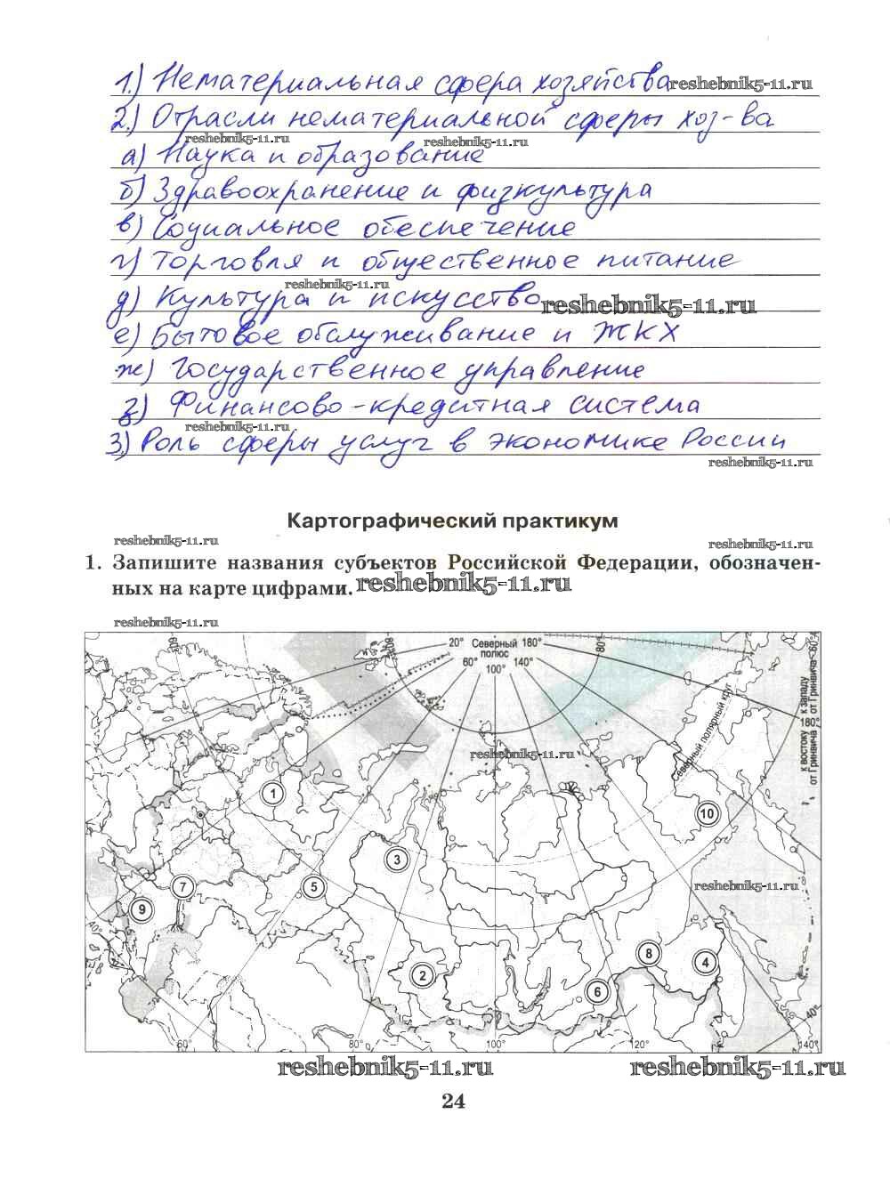 Готовая домашняя работа с ответами по Географии за 9 класс Домогацких Рабочая тетрадь Инновационная школа Русское слово 2018 ФГОС - Часть 2. Страницы 24