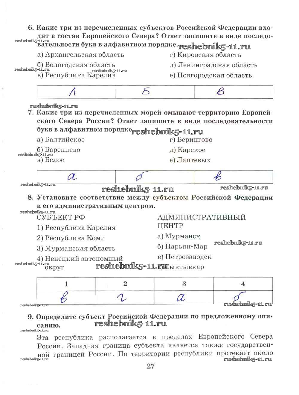 Готовая домашняя работа с ответами по Географии за 9 класс Домогацких Рабочая тетрадь Инновационная школа Русское слово 2018 ФГОС - Часть 2. Страницы 27