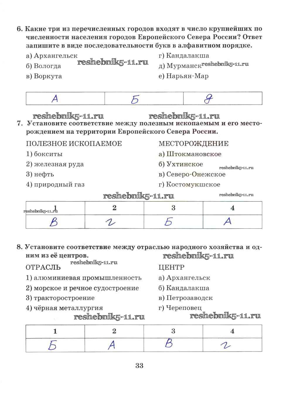 Готовая домашняя работа с ответами по Географии за 9 класс Домогацких Рабочая тетрадь Инновационная школа Русское слово 2018 ФГОС - Часть 2. Страницы 33