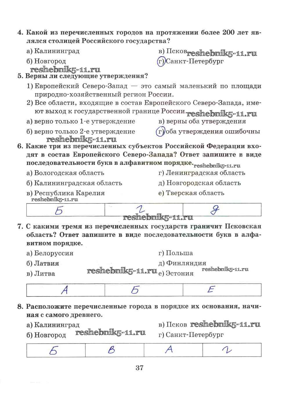 Готовая домашняя работа с ответами по Географии за 9 класс Домогацких Рабочая тетрадь Инновационная школа Русское слово 2018 ФГОС - Часть 2. Страницы 37