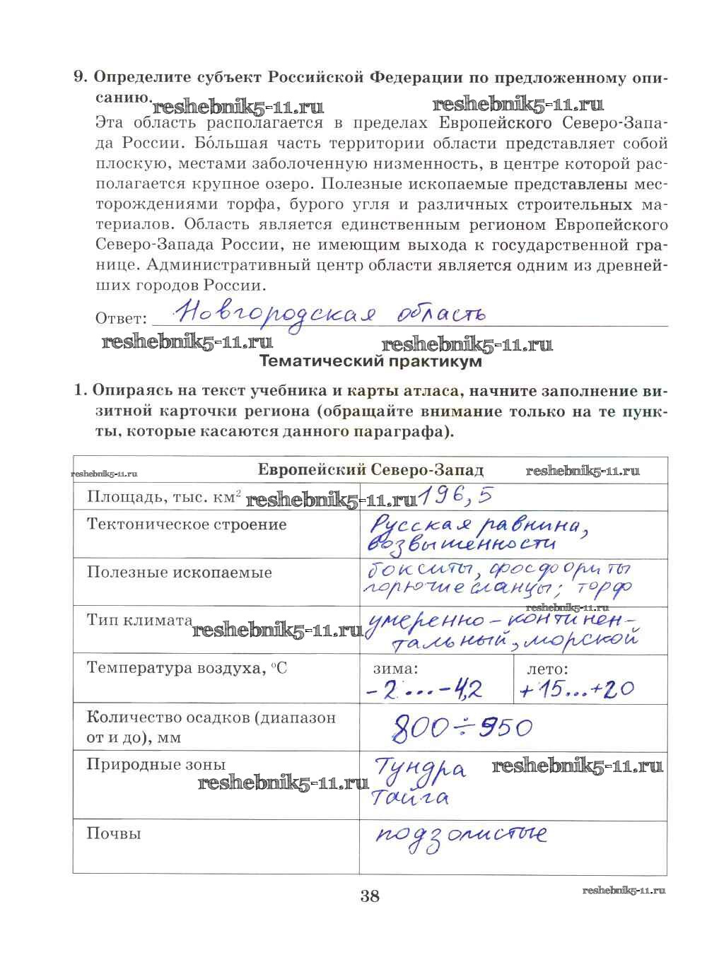 Готовая домашняя работа с ответами по Географии за 9 класс Домогацких Рабочая тетрадь Инновационная школа Русское слово 2018 ФГОС - Часть 2. Страницы 38