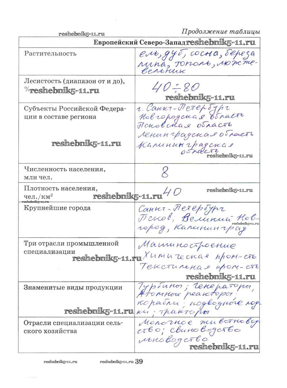 Готовая домашняя работа с ответами по Географии за 9 класс Домогацких Рабочая тетрадь Инновационная школа Русское слово 2018 ФГОС - Часть 2. Страницы 39