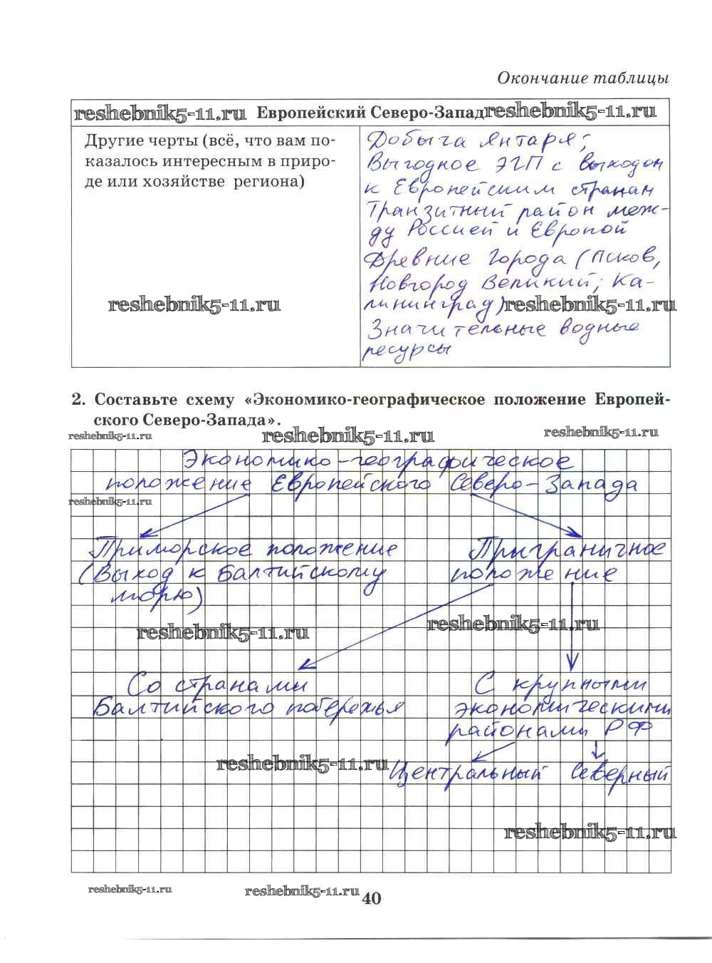 Готовая домашняя работа с ответами по Географии за 9 класс Домогацких Рабочая тетрадь Инновационная школа Русское слово 2018 ФГОС - Часть 2. Страницы 40