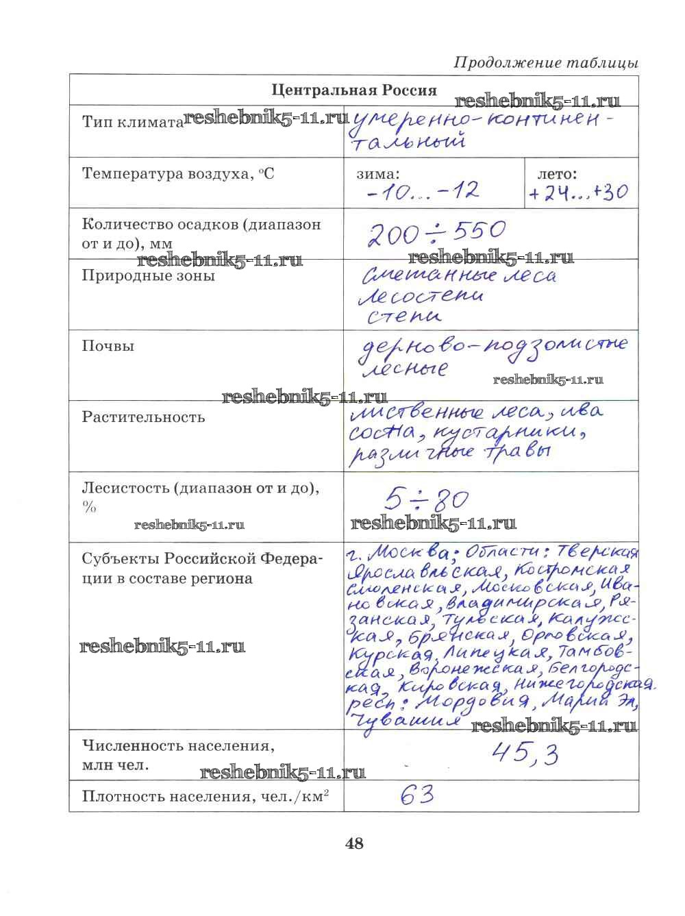 Готовая домашняя работа с ответами по Географии за 9 класс Домогацких Рабочая тетрадь Инновационная школа Русское слово 2018 ФГОС - Часть 2. Страницы 48