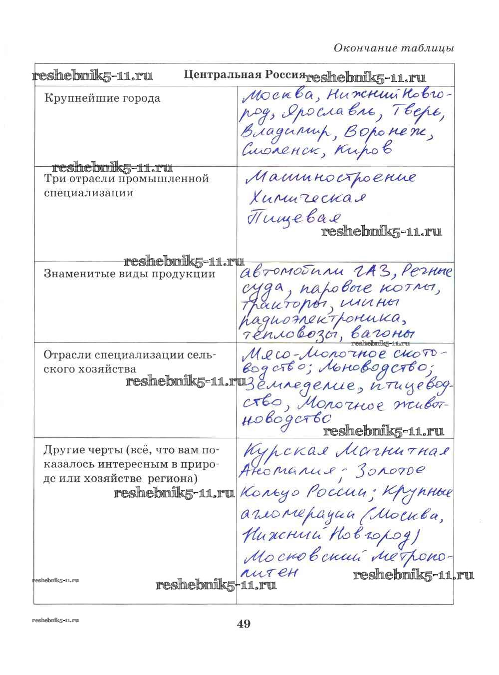 Готовая домашняя работа с ответами по Географии за 9 класс Домогацких Рабочая тетрадь Инновационная школа Русское слово 2018 ФГОС - Часть 2. Страницы 49
