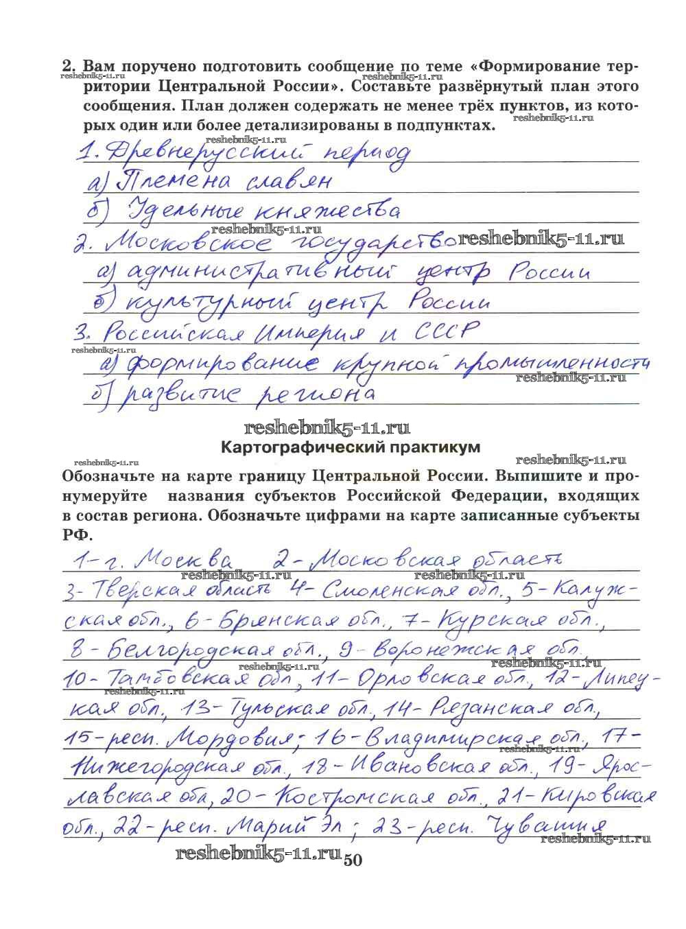 Готовая домашняя работа с ответами по Географии за 9 класс Домогацких Рабочая тетрадь Инновационная школа Русское слово 2018 ФГОС - Часть 2. Страницы 50