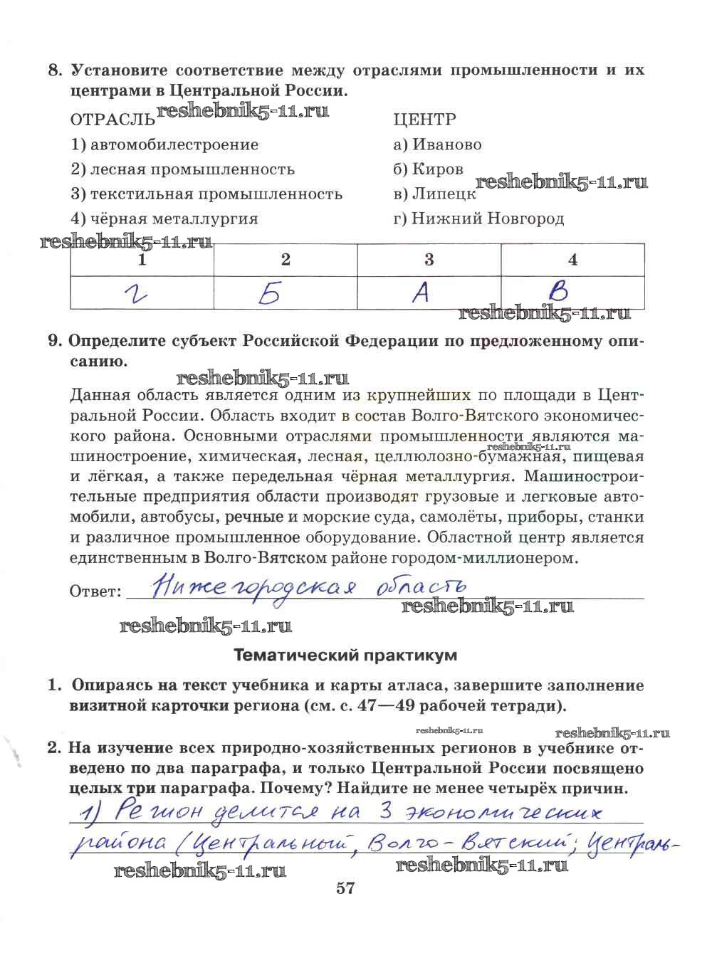 Готовая домашняя работа с ответами по Географии за 9 класс Домогацких Рабочая тетрадь Инновационная школа Русское слово 2018 ФГОС - Часть 2. Страницы 57