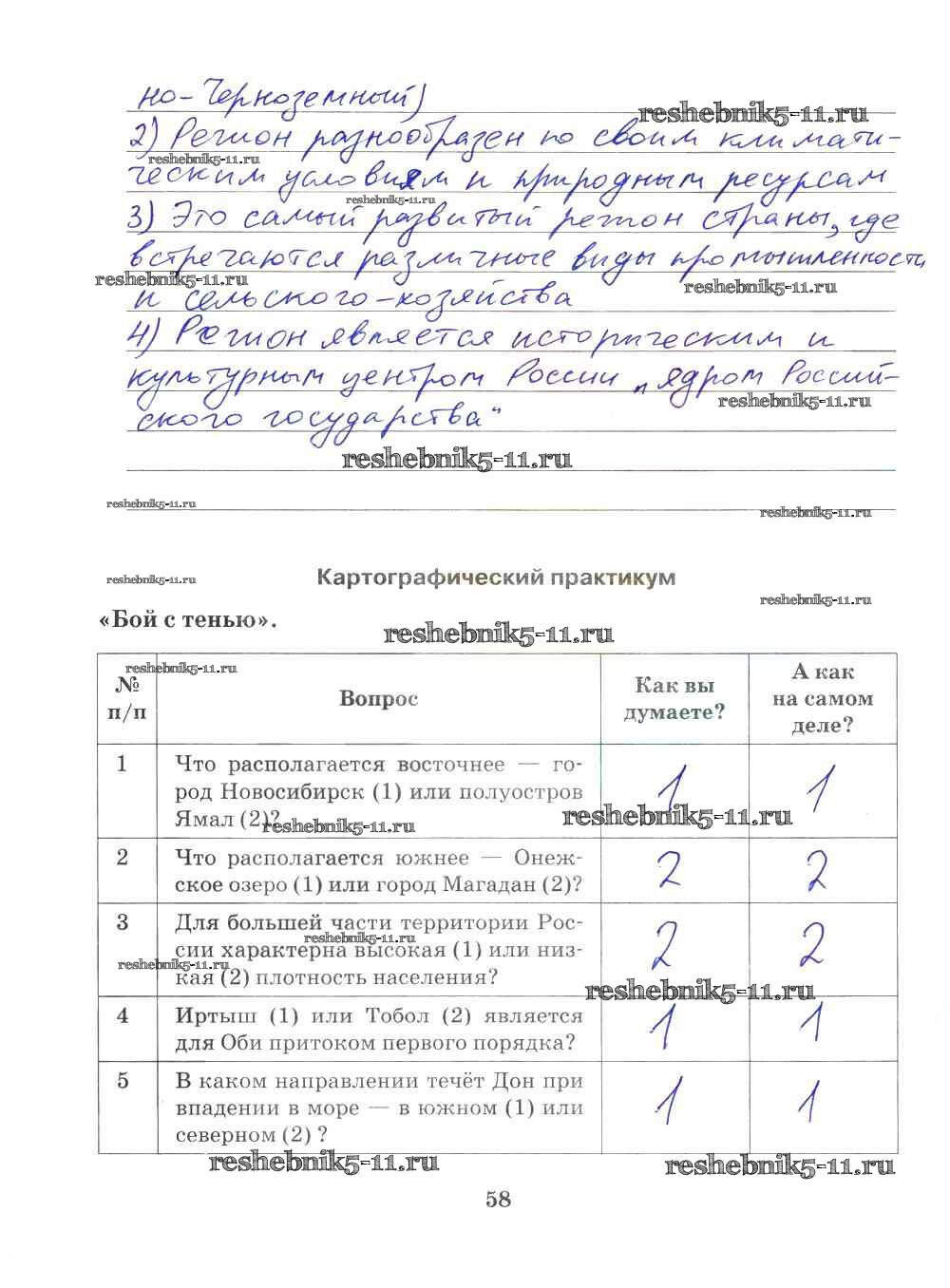 Готовая домашняя работа с ответами по Географии за 9 класс Домогацких Рабочая тетрадь Инновационная школа Русское слово 2018 ФГОС - Часть 2. Страницы 58