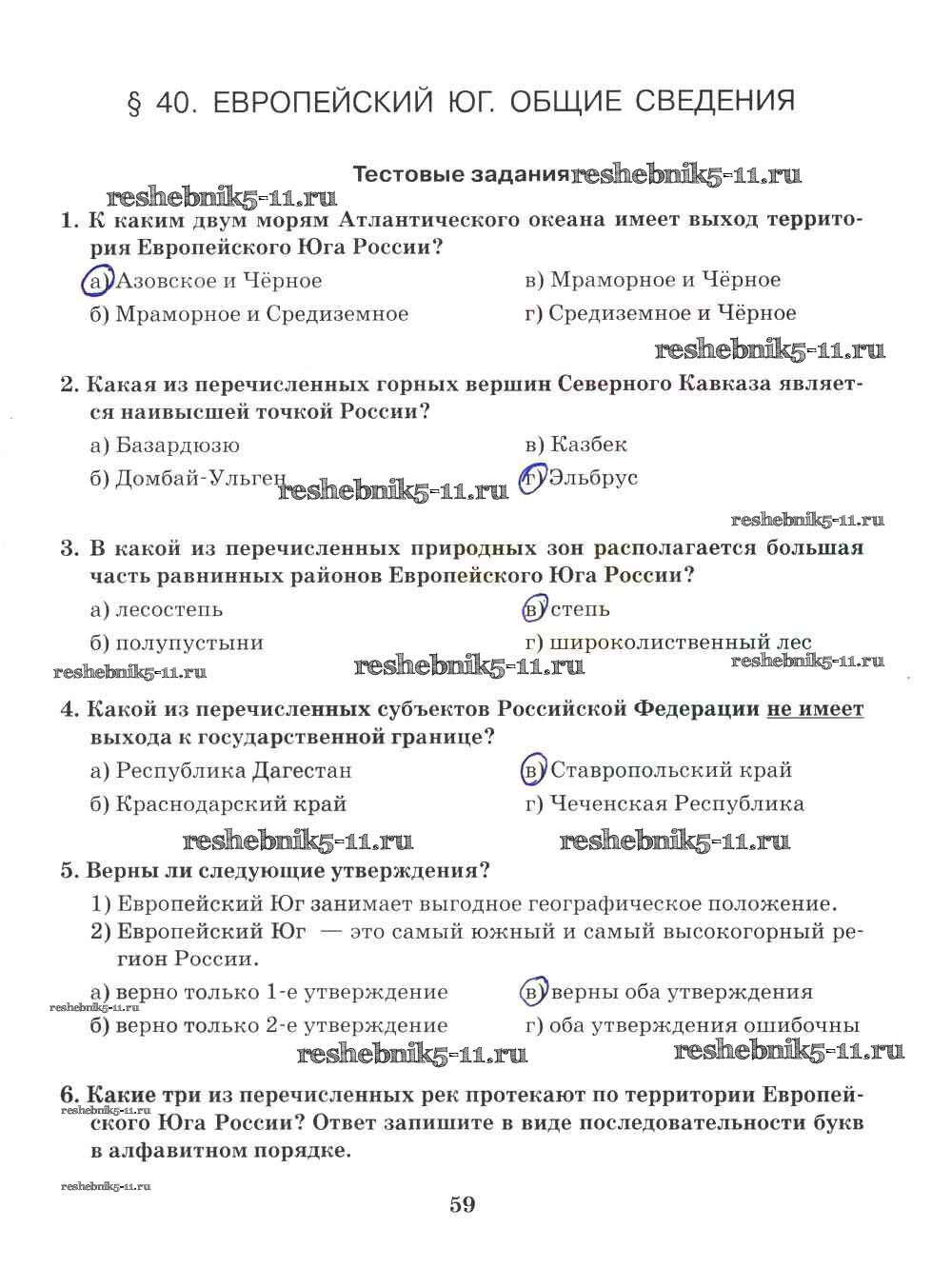 Готовая домашняя работа с ответами по Географии за 9 класс Домогацких Рабочая тетрадь Инновационная школа Русское слово 2018 ФГОС - Часть 2. Страницы 59