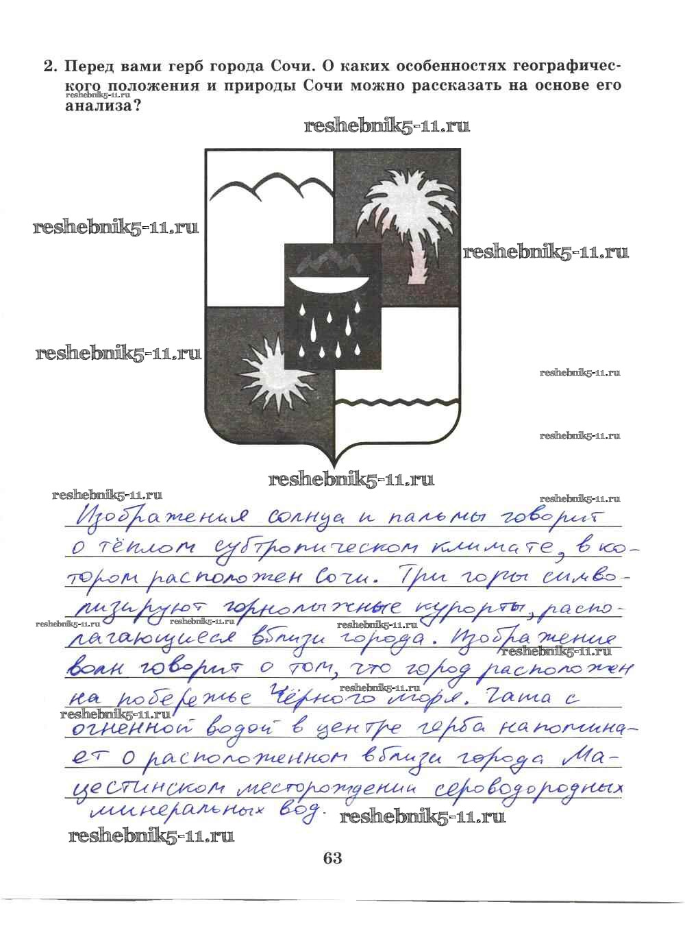 Готовая домашняя работа с ответами по Географии за 9 класс Домогацких Рабочая тетрадь Инновационная школа Русское слово 2018 ФГОС - Часть 2. Страницы 63