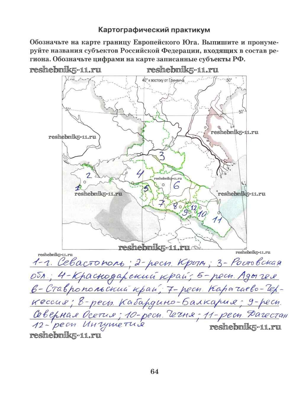 Готовая домашняя работа с ответами по Географии за 9 класс Домогацких Рабочая тетрадь Инновационная школа Русское слово 2018 ФГОС - Часть 2. Страницы 64