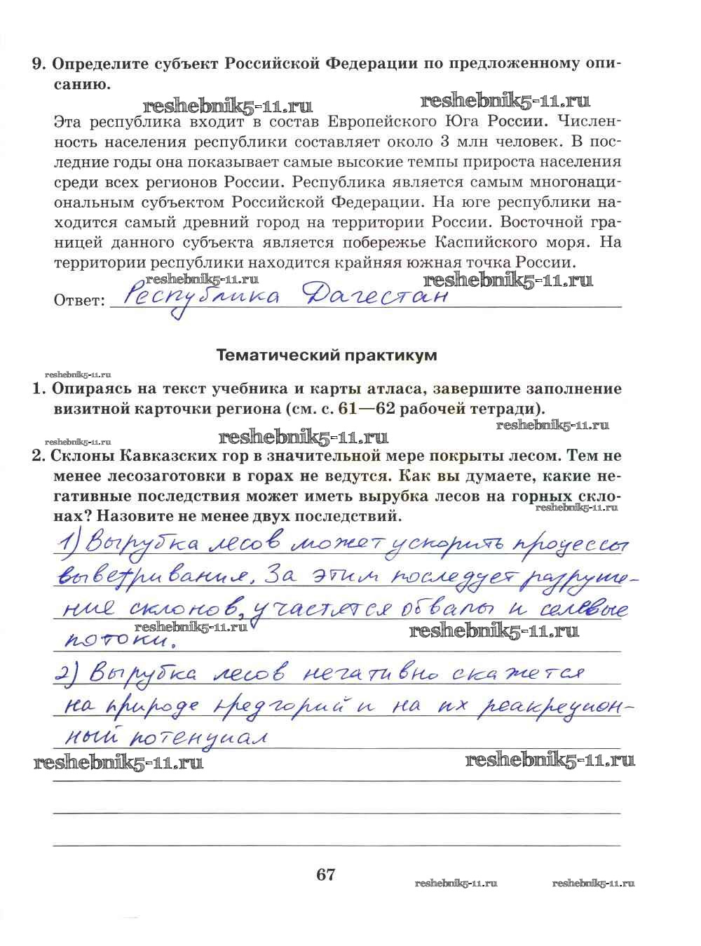 Готовая домашняя работа с ответами по Географии за 9 класс Домогацких Рабочая тетрадь Инновационная школа Русское слово 2018 ФГОС - Часть 2. Страницы 67