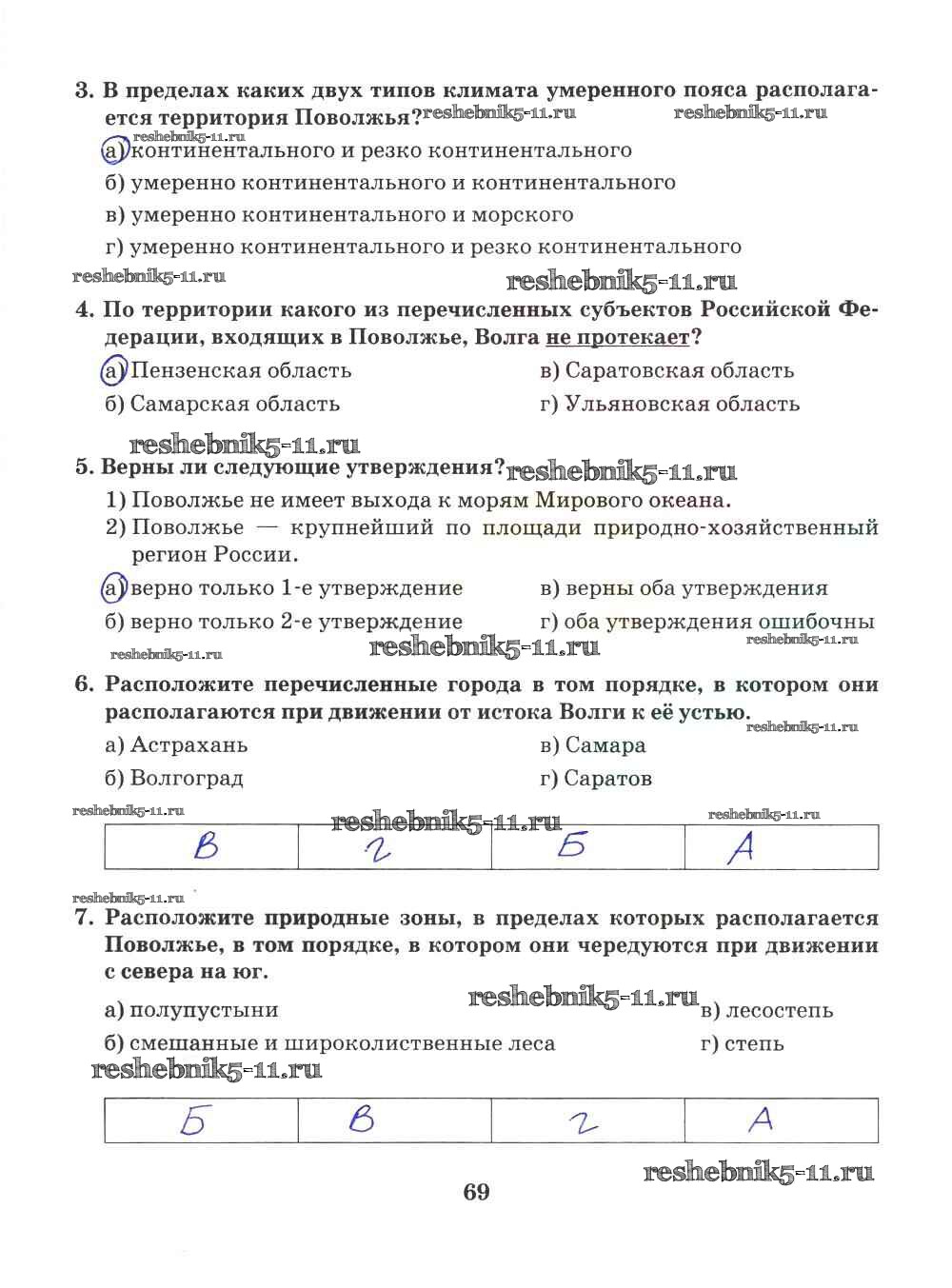 Готовая домашняя работа с ответами по Географии за 9 класс Домогацких Рабочая тетрадь Инновационная школа Русское слово 2018 ФГОС - Часть 2. Страницы 69